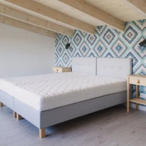 Sypialnie na piętrze prezentują się coraz bardziej przytulnie. Solidna i stylowa konstrukcja schodów zapewnia bezpieczeństwo. Podłogi, sufity i ściany nabrały charakteru. Montowane jest także stylowe oświetlenie.